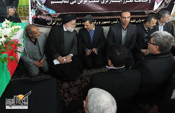 تصاویر/ احمدی نژاد در مراسم تشییع پدر شهید کاوه