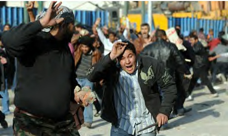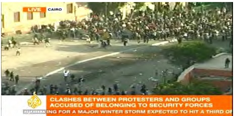 تصاویر: پرتاب سنگ توسط معترضین و حامیان مبارک به یکدیگر